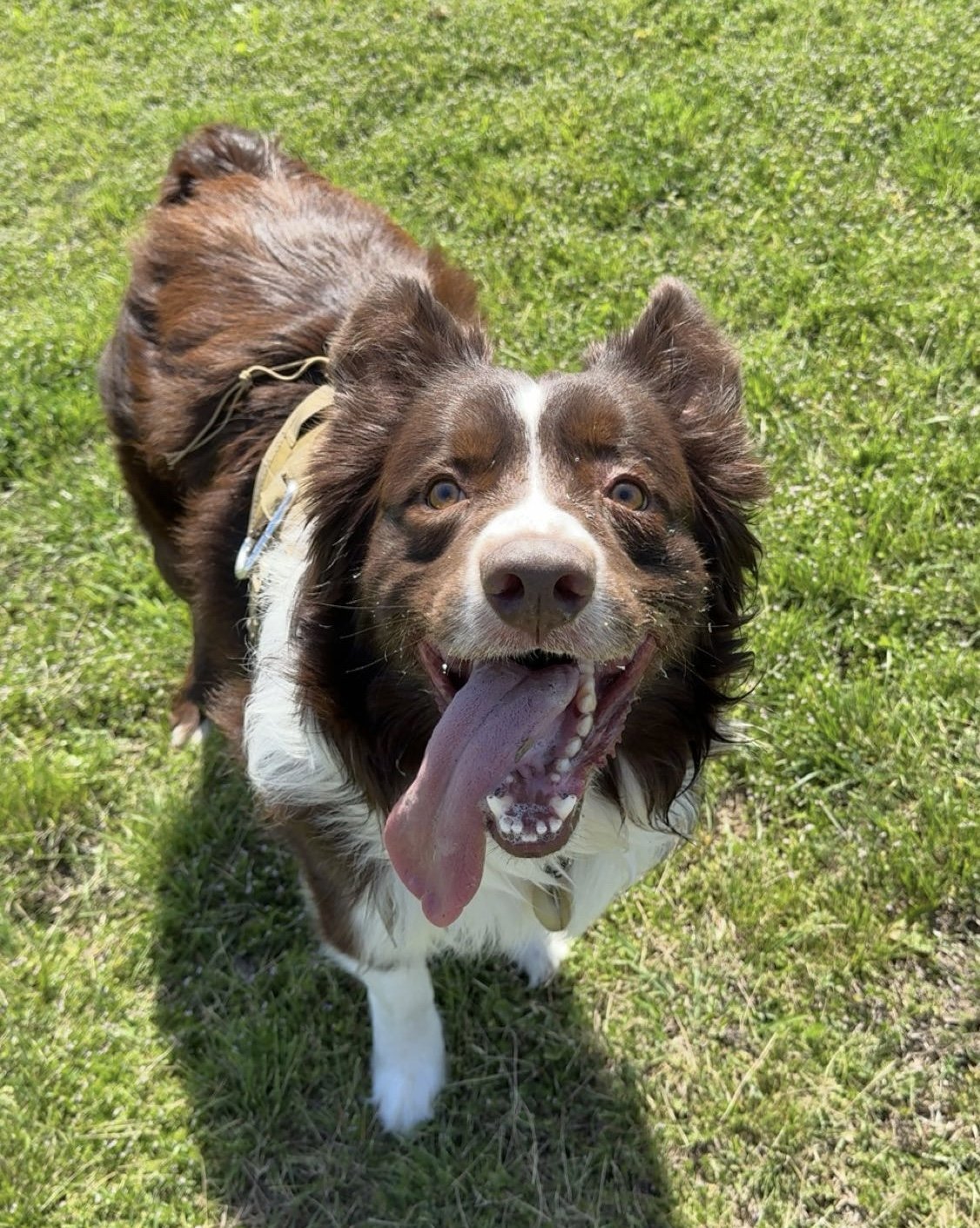 Lucky takes his role seriously—welcoming everyone with enthusiasm and making sure no one forgets to move a little more that day. When he’s not lobbying for another trip to the trail, he’s perfecting his frisbee skills or searching for his next toy to “supervise.”
